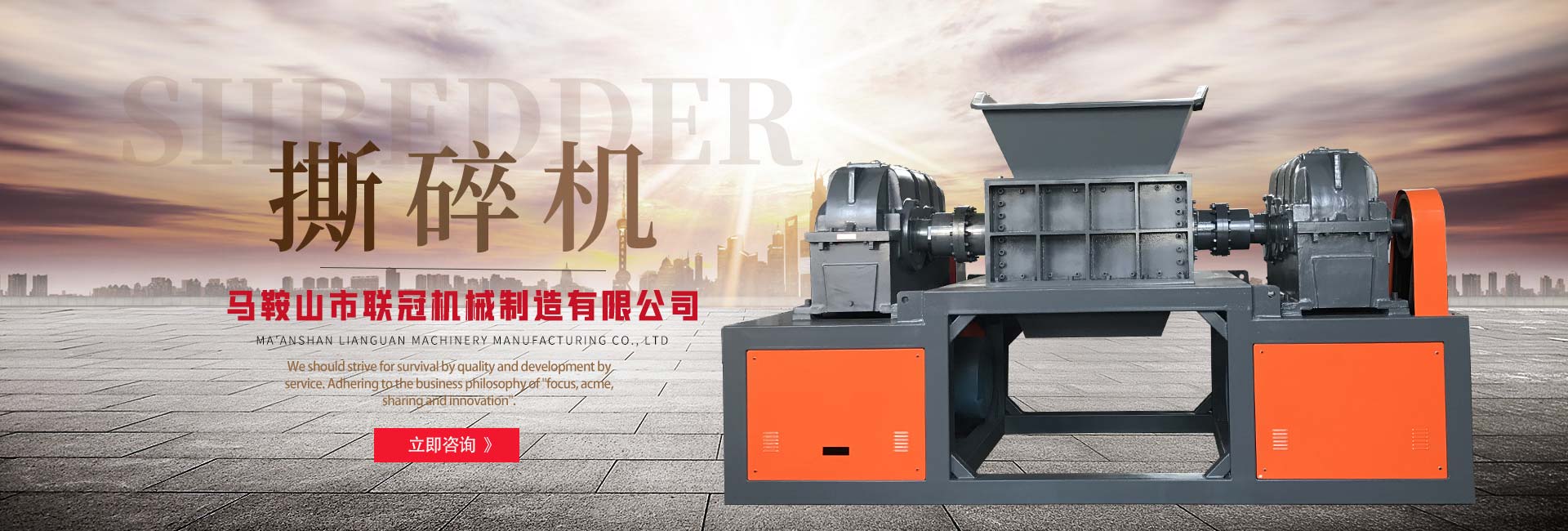 馬鞍山市聯(lián)冠機(jī)械制造有限公司致力于通過(guò)科技創(chuàng)新達(dá)到環(huán)境保護(hù),為地球“制造氧氣”的目的。長(zhǎng)期以來(lái),我們堅(jiān)守此宗旨,汲取先進(jìn)理念,致力于設(shè)計(jì)、研發(fā)、生產(chǎn)實(shí)用,的環(huán)保、廢舊物料再生設(shè)備。馬鞍山市聯(lián)冠機(jī)械制造有限公司主要產(chǎn)品包括:生活垃圾預(yù)處理系統(tǒng)、大件垃圾回收處理系統(tǒng)、金屬?gòu)U棄物(汽車摩托車外殼、壓塊、鐵屑)處理系統(tǒng)、廚余垃圾預(yù)處理系統(tǒng)、廢舊輪胎回收處理系統(tǒng)、廢舊電子電器回收處理系統(tǒng)、廢舊塑料回收處理系統(tǒng)等。馬鞍山市聯(lián)冠機(jī)械制造有限公司在確保產(chǎn)品品質(zhì)和完善的海外服務(wù)基礎(chǔ)上,公司經(jīng)過(guò)長(zhǎng)期戰(zhàn)略布局,并且積極進(jìn)軍國(guó)外市場(chǎng)。面對(duì)經(jīng)濟(jì)快速發(fā)展提供的機(jī)遇,聯(lián)冠機(jī)械始終依靠提供更好的產(chǎn)品和完善的服務(wù)來(lái)追求客戶滿意,從而實(shí)現(xiàn)企業(yè)的價(jià)值!另一方面,我們堅(jiān)信科技推動(dòng)了人的觀念和機(jī)械的效率共同進(jìn)步。規(guī)避行業(yè)發(fā)展的劣勢(shì)、探求機(jī)械制造與人類文明結(jié)合是我們永遠(yuǎn)的動(dòng)力。馬鞍山市聯(lián)冠機(jī)械制造有限公司以質(zhì)量求生存、以服務(wù)求發(fā)...